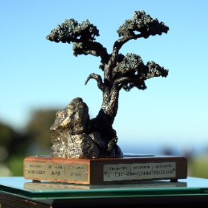 Congratulations to Harris English on his victory at the Farmers Insurance Open! English overcame the cold, windy conditions on Saturday to secure his fifth career PGA Tour title, and take home the Farmers Insurance Open trophy. The iconic handcrafted trophy, made by the team at Malcolm DeMille, is a realistic bronze cast and patina sculpture of the endangered Torrey Pine sitting on the towering cliffs above the Pacific coastline. It is a beautiful tribute to the local terrain at Torrey Pines Golf Course in San Diego, California. Malcolm DeMille is honored to be an ongoing part of the Farmers Insurance Open and a part of Harris English’s journey by creating this striking trophy.