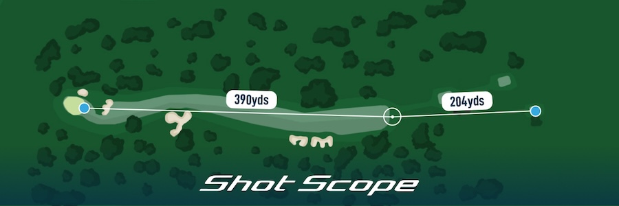 Their average drive will come up 10y short of the green, but a well-struck drive, using Shot Scope’s P-Avg., would be long enough to get safely on board—no room for mishits.
