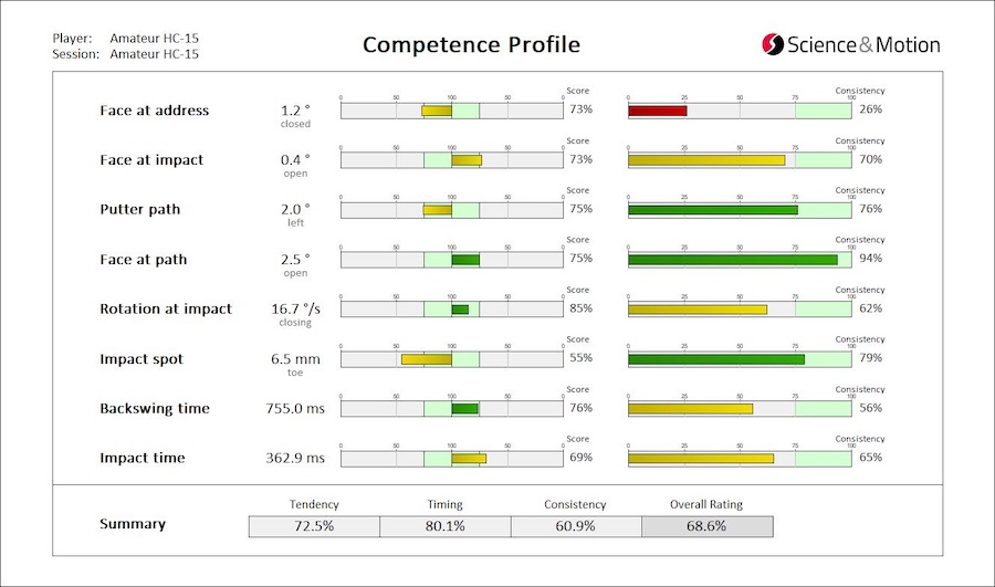 SAM PuttLab Professional Report example page: