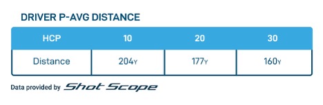 P-Avg. or Performance-Average is Shot Scope’s data metric that gives players a club distance that a well-struck shot will travel by removing extreme outliers from the dataset, both good and bad. With the average woman’s handicap in the mid-to-high 20s, depending on the region and governing body, a drive in the region of 160-170 yards would be considered on par with the average golfer.