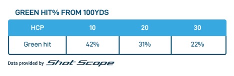Many may think that hitting the green from 100 yards is a guarantee, but the data paints a very different picture. For the average golfer, from 100 yards, the likelihood of hitting the green is around one in four, which means that 75 percent of shots from 100 yards will miss the green.